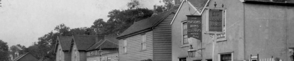 The Mason’s Arms stood for about 170 years on a site 70 yards long by 15 yards deep which was enclosed from the manorial roadside waste by 1801 by James Esdaile of New Place, son of Sir James Esdaile. By 1813 a “messuage divided into two tenements” occupied by “Thomas Crowest and Martha Tadlow, widow” had been built on this site. Esdaile merged this enclosure with an adjacent site to the west in his ownership which Thomas Talbot, school master had enclosed in 1800 or earlier.