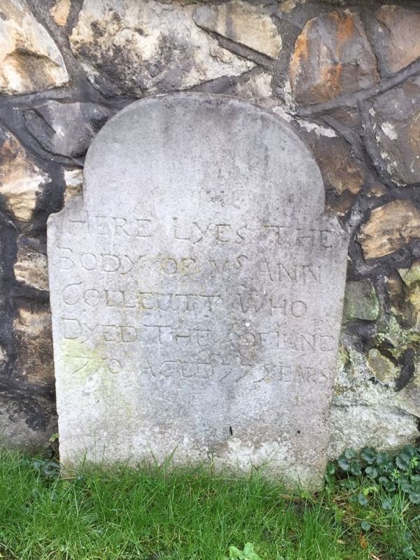 Before the seventeenth century it was a common practice for previous graves to be cleared to make way for new burials. It was only after this when better-off parishioners had gravestones erected that this practice ended. Four old gravestones, including the two oldest, now reside against the north wall of the St Mary’s Chapel, and were presumably relocated there after the 1928-29 church extension disturbed these graves in their original location, most likely to the south of the church, which would have been the oldest part of the graveyard. The earliest surviving gravestone, dating from 1695, commemorates Joseph Bryan, described in the Upminster burial register as being of Cripplegate (where the modern Barbican development now stands). Bryan was a Citizen and Clothworker of the City of London, whose death by consumption is recorded in the St Giles Cripplegate burial register on 24th June 1695, the same date as his burial at Upminster. His widow Anne (nee Barefoot) was subsequently buried at Upminster in 1717 and when the couple had married in 1688 at Holy Trinity, Minories, just east of Tower Hill, Upminster was shown as Anne’s home parish. Anne is no doubt the Widow Bryan recorded in the Gaynes manorial records in 1704 as jointly owning with Ann Calcott, widow copyhold properties called Motts, Martins and Willotts in the north end of Upminster (opposite the current Strawberry Farm). Coincidentally, the next oldest gravestone in the churchyard is in memory of Ann “Collcutt” who died in 1710, aged 77. Joseph Bryan’s will mentions his good friend Mr Thomas Colcott, Citizen and Leatherseller. Since Widow Bryan and Widow Calcott (however it is spelt) jointly owned those Upminster copyholds they probably had a family relationship.