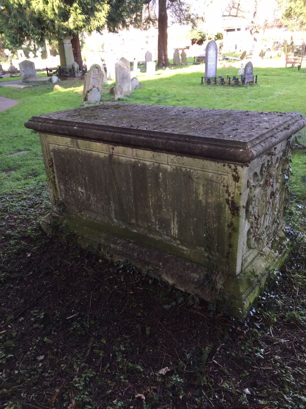 Another marble tomb belonged to the Rowe family, which I’ve written about HERE. This tomb dates from 1741 when Edward Rowe was given permission by the Rector Samuel Bradshaw to make a family vault, and to erect a monument to his late brother Samuel; the monument also commemorated eight other family members. A third marble tomb is that of the Bradshaws, commemorating the Reverend Bradshaw himself, who died in 1768, his younger brother Thomas Bradshaw, the patron of the living, who predeceased the Rector in 1760, and Thomas’ wife Frances, who died before both of them in 1744. Sadly, both the Rowe and Bradshaw monuments are now in very poor condition.