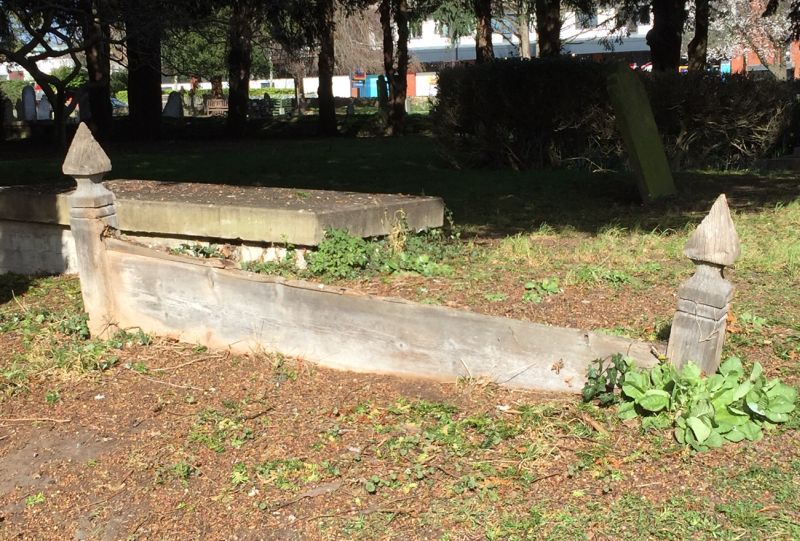 When Wilson listed the graveyard monuments in 1881 five were described as being “railed” (i.e. surrounded by iron railings). These are the Rowe, Knapton and Bradshaw tombs, already mentioned, that of George Stubbs of Harwood Hall (d.1808), and that of the wife the daughters of John Lovewell of Fox Hall which nowadays is the only railed tomb. The memorial railings were removed in the early years of World War 2, like many wrought iron railings and gates, supposedly so that they could be smelted down into guns and munitions to help the war effort. The reality was different and it’s probable that much iron was unsuitable, or that more iron was collected than could be actually reused and it was quietly disposed of after the end of the war.