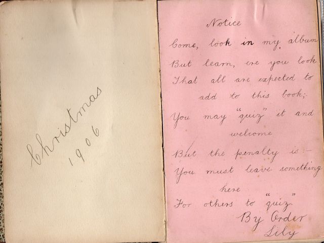 That Christmas Lily first wrote in an album that she may have received as a present: