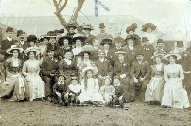 Seated: L to R: Lily Aggiss, Emma (“Bet”) Knight, William Aggiss, Sarah Aggiss, Annie Aggiss, “Jack” Knight, Annie Knight, Walter Knight, Ellen (“Nell”) Aggiss & Edith (“Edie”) Knight